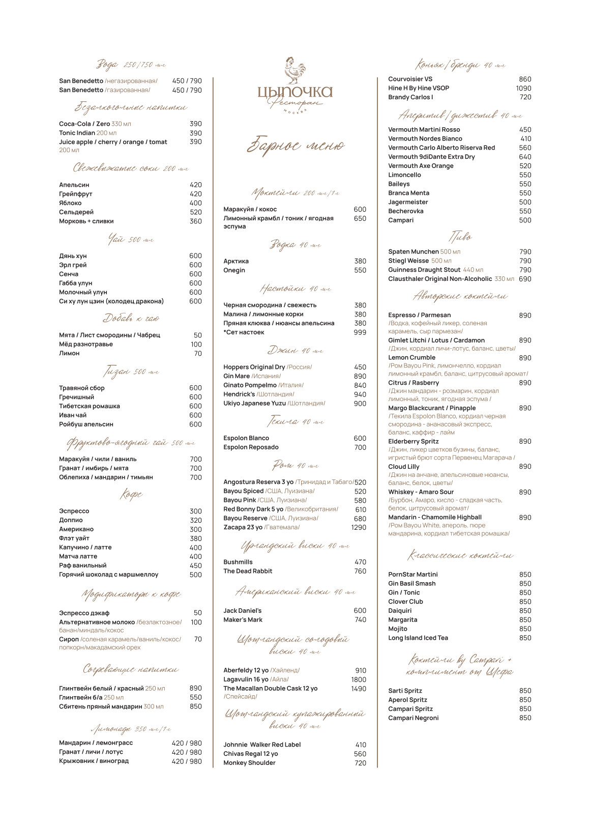 барное меню