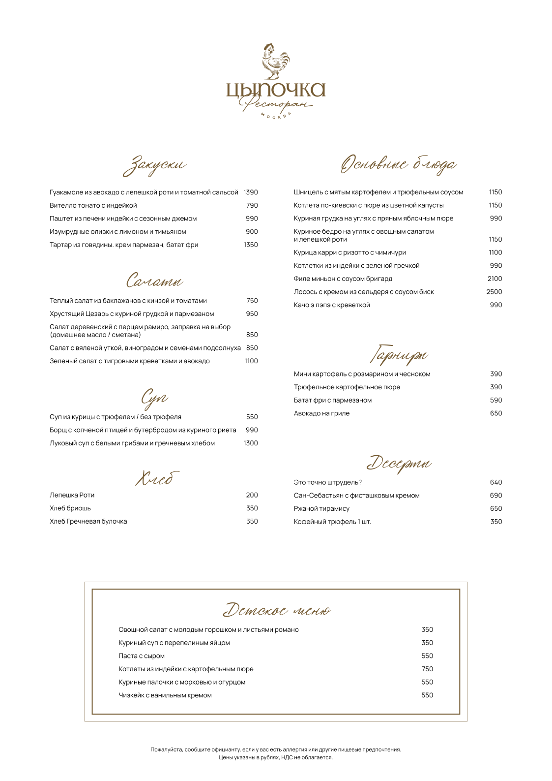 меню кухни